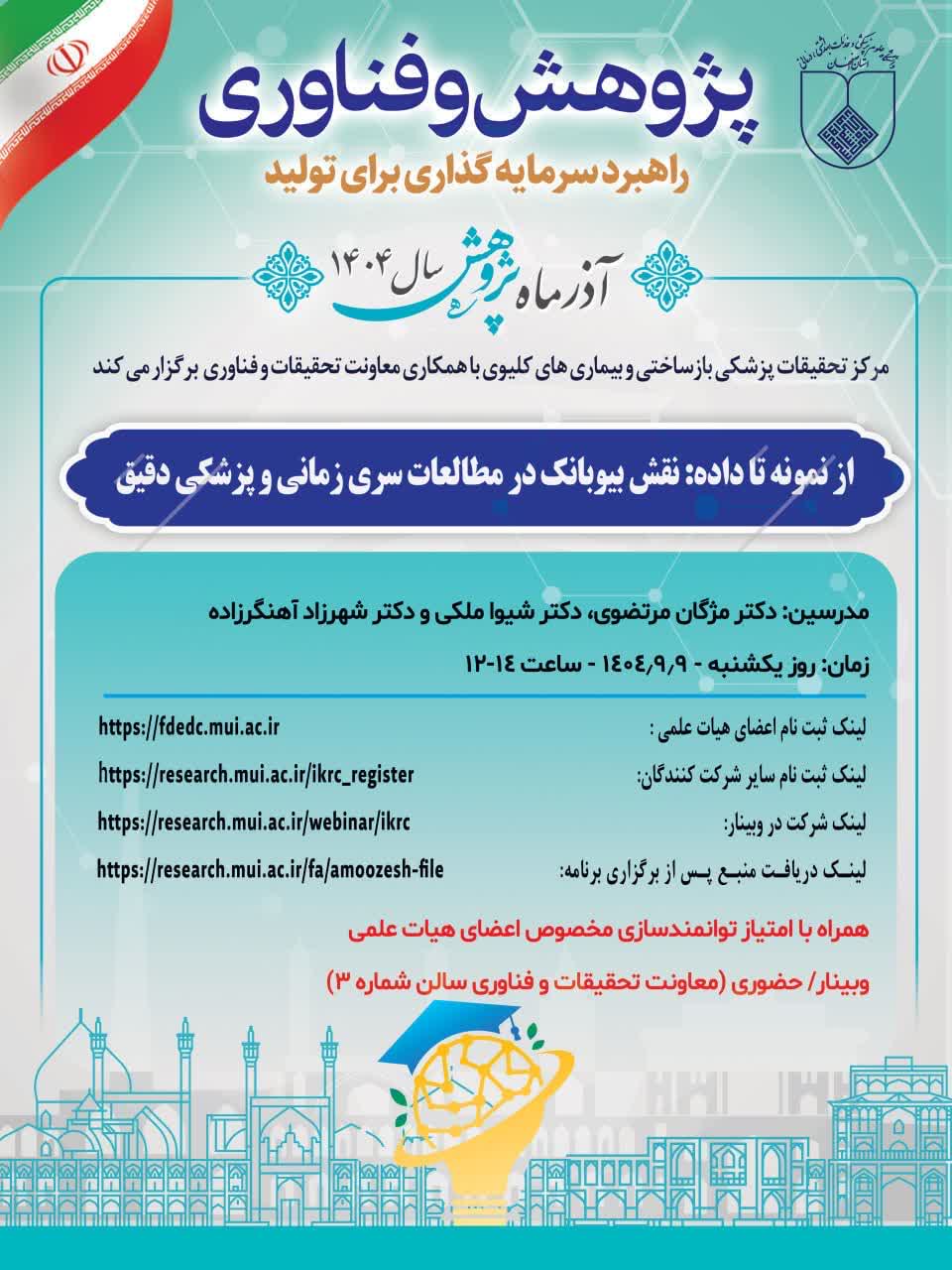 لینک ورود به برنامه آموزشی: https://research.mui.ac.ir/webinar/ikrc